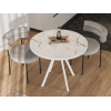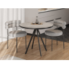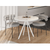 Компактная модель гармонично сочетается с разными стилями интерьера. Круглая столешница практична и удобна в эксплуатации: не впитывает влагу, не портится от горячей посуды и легко моется. Прочное конусовидное подстолье обеспечит устойчивость, а специальные подпятники сохранят напольное покрытие.