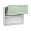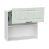 Дверцы легко складываются при открывании и надежно фиксируются в поднятом положении благодаря специальному механизму. Фасады с текстурой дерева и рамочной фрезеровкой придают модулю изысканный вид.