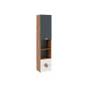 Стильные ручки на фасадах и сочетание нескольких оттенков создают акценты в интерьере. Благодаря комбинированному наполнению можно часть вещей расположить на виду, а остальное — спрятать внутри. Ящики и дверца закрываются плавно и бесшумно.