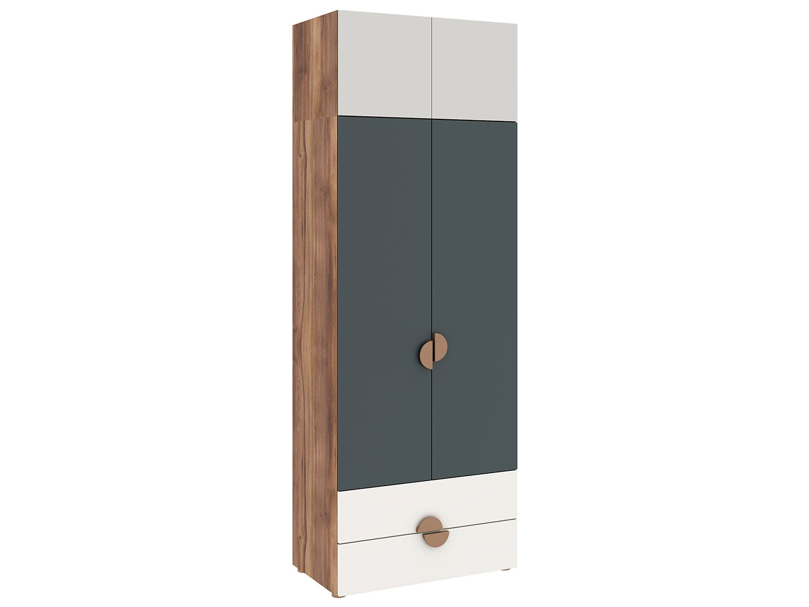 Оттенки фасадов идеально дополняют древесную текстуру корпусов, а стильные ручки расставляют акценты в интерьере. Ящики и дверцы закрываются плавно и бесшумно, поэтому пользоваться мебелью очень комфортно.
