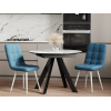 Мягкая обивка украшена декоративной стежкой, которая служит лаконичным акцентом и защищает ткань от растяжения. Металлические каркас и ножки обеспечивают прочность и устойчивость конструкции, а отсутствие подлокотников позволяет сэкономить пространство, вплотную придвинув стул к столу.
