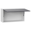 Откидная дверца оснащена газлифтом для надежной фиксации в открытом положении. Фасад из экологичного материала гарантирует долговечность и надежность. Декоративная вертикальная фрезеровка придает модулю изящный вид.
