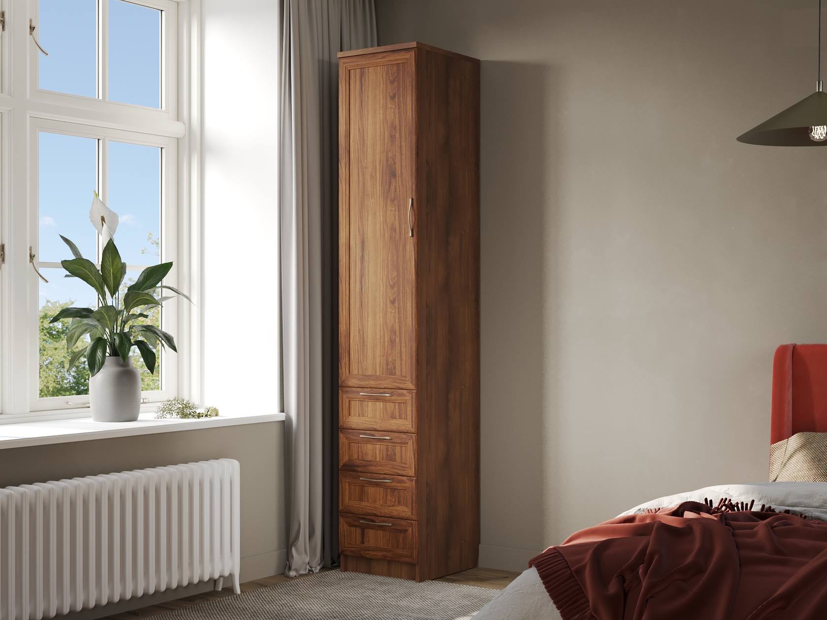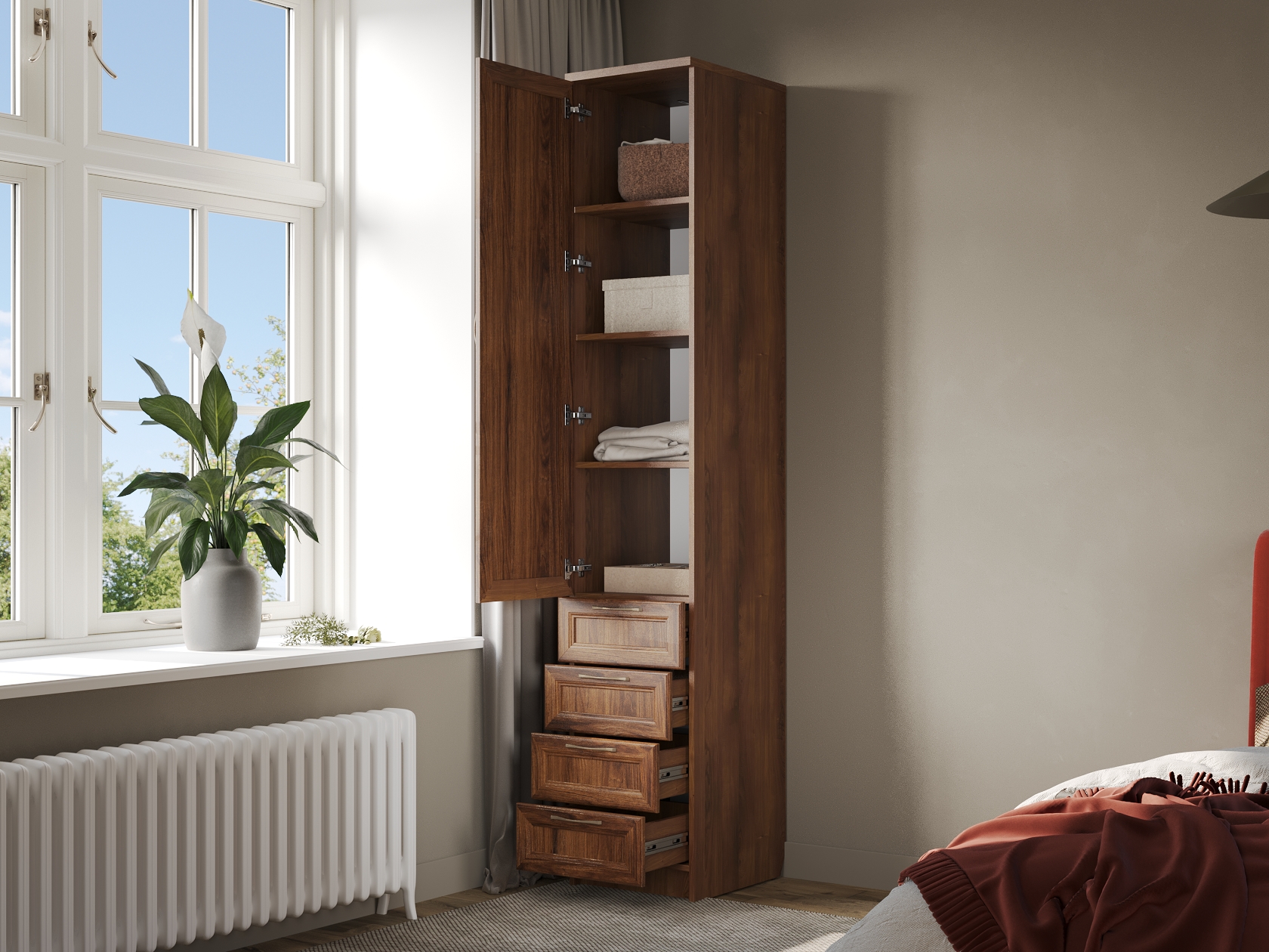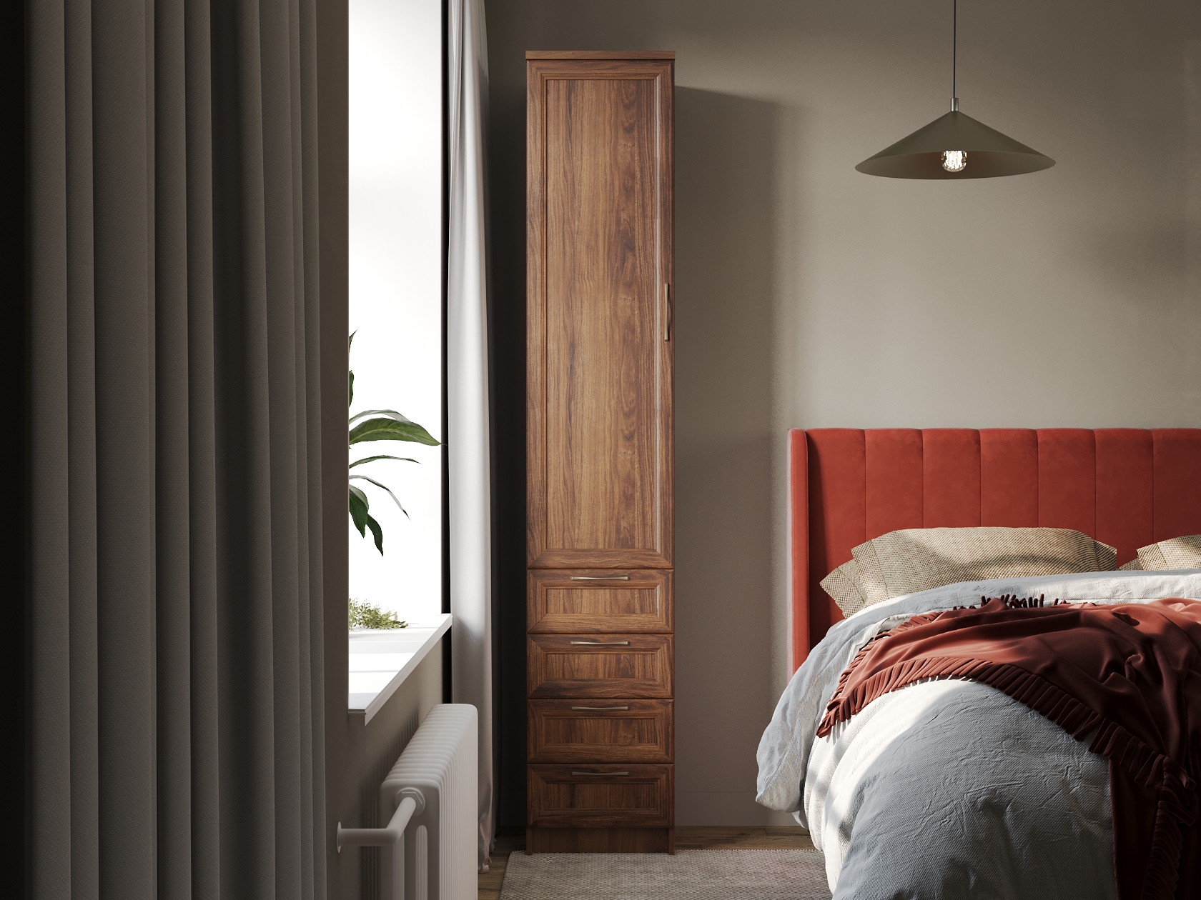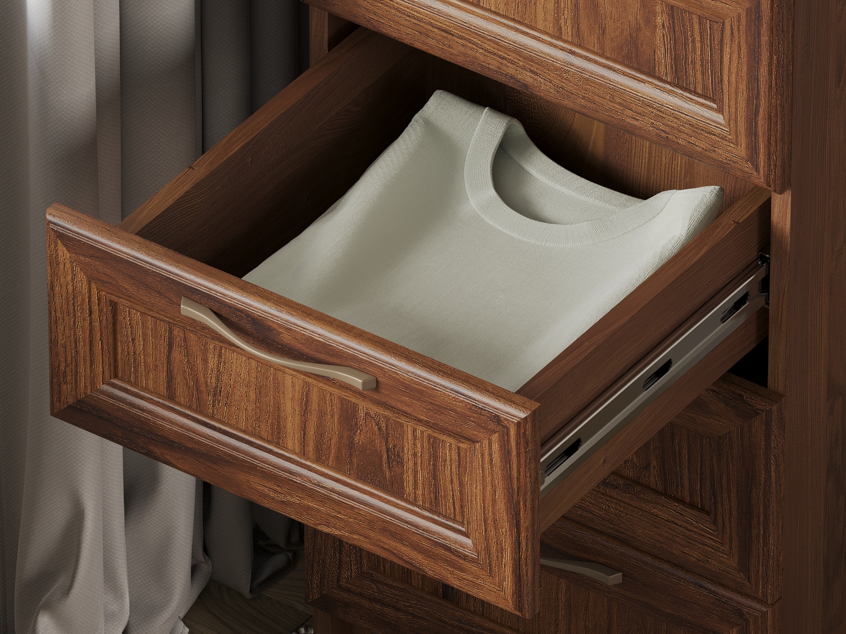 Модель можно использовать для хранения самых разных вещей: от белья и одежды до книг и документов. Выдвижные ящики обеспечат быстрый доступ к полезным мелочам. За фасадами легко ухаживать: неоднородная текстура дерева отлично скрывает частицы пыли и небольшие повреждения.